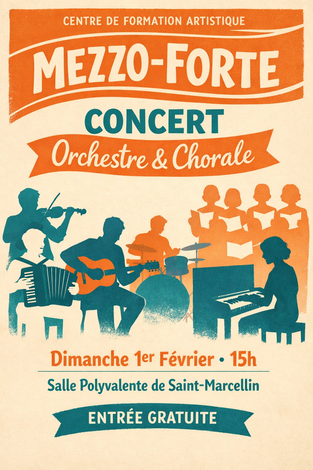 1 Février 2026 : 15h - Concert de l'orchestre et de la chorale de Mezzo-Forte, à la salle polyvalente de St Marcellin